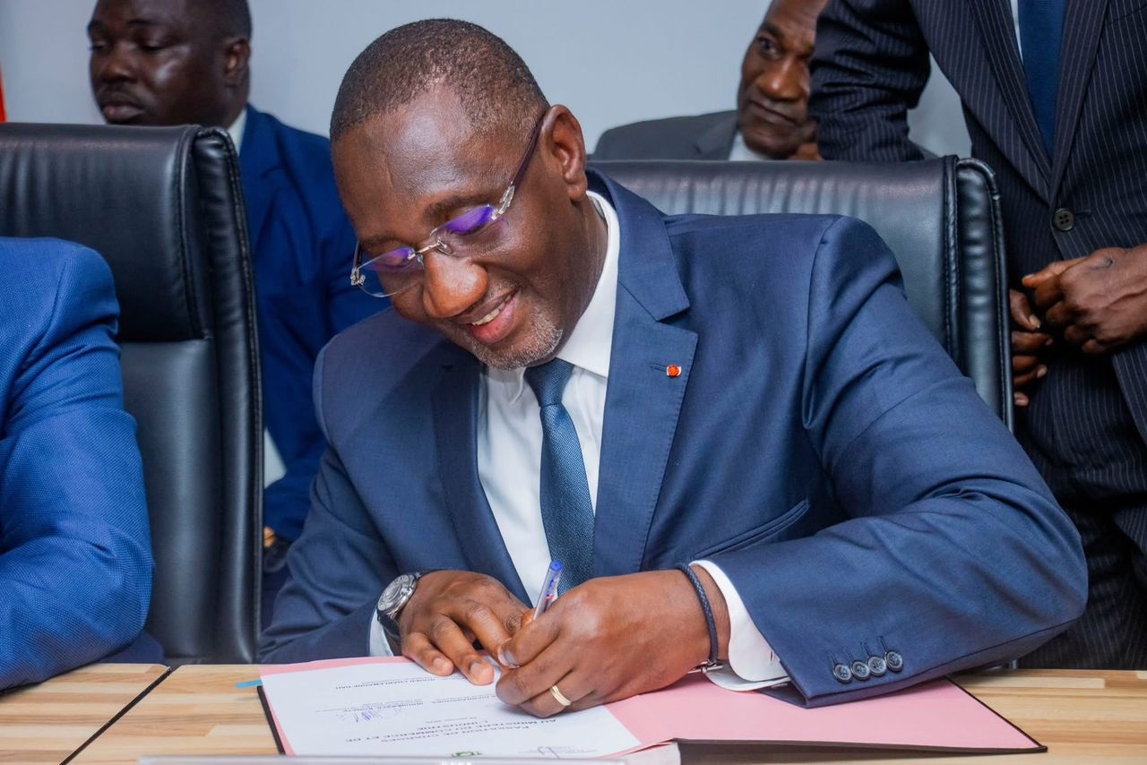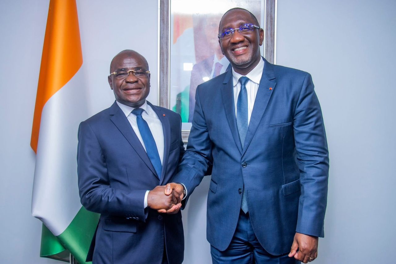 À l’occasion de la cérémonie de passation de charges au Ministère du Commerce et de l’Industrie, entre le Ministre sortant du Commerce et de l’Industrie Dr. Souleymane DIARRASSOUBA et le nouveau Ministre du Commerce, de l’Industrie et de l’Artisanat M. Ibrahim Khalil KONATE, le mercredi 28 janvier 2026 au cabinet du Ministère en charge du Commerce, l’Office d’Aide à la Commercialisation des Produits Vivriers (OCPV) à travers son Directeur Général M. Gnenye Adou Bernard, a rendu un hommage appuyé au Ministre Souleymane Diarrassouba pour sa disponibilité constante et son engagement en faveur des acteurs du secteur des produits vivriers.