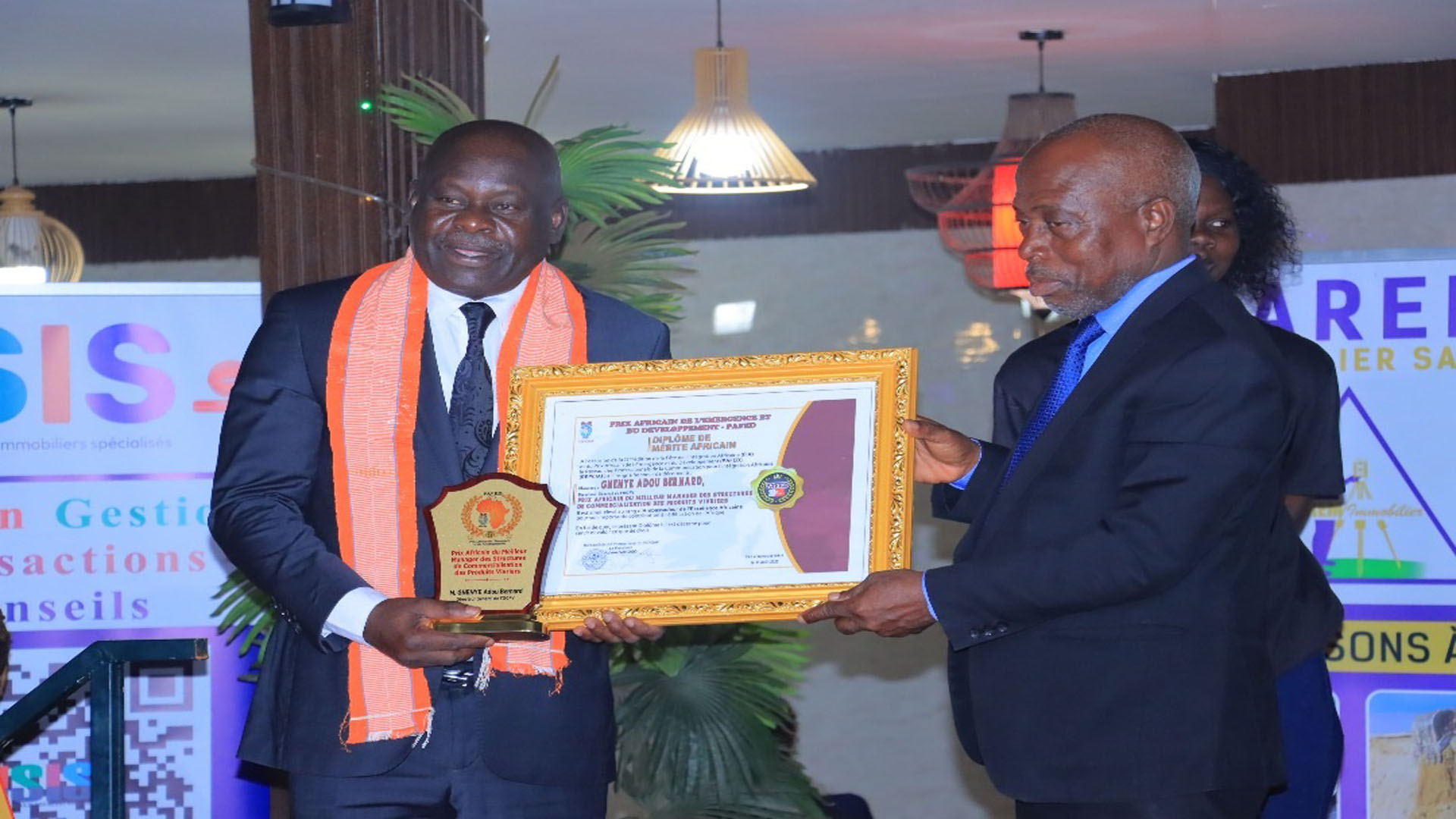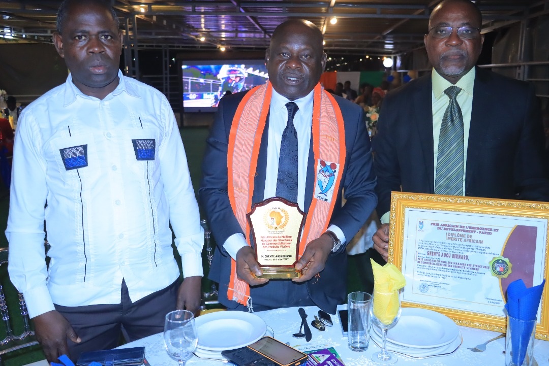 Cette Distinction est un témoignage renouvelé de son leadership et de son engagement dans le processus de modernisation des systèmes de commercialisation des produits vivriers en Côte d’Ivoire.